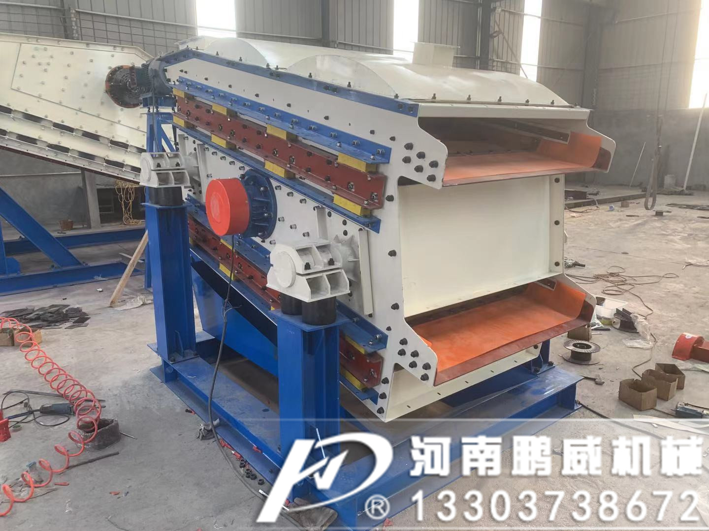 基礎結構:1、側板:采用整板制造,通過高精度水下等離子數(shù)控切割鉆孔加工中心完成,無切割應力和變形。側板全部鉚釘 連接,無焊縫,很大程度上避免了側板的開裂。2、活動橫梁:為矩形管結構,結構強度更合適更合理。最大程度保證了橫梁所受到的沖擊力。3、固定橫梁:和活動橫梁同樣,實現(xiàn)整機結構完全平衡。4、篩板:引進國外聚氨酯篩板制造技術,研發(fā)的三組份高強度,抗拉性強,抗磨損,防腐蝕和有效的開孔率使篩網(wǎng)使用壽命更長久。5、側板電機:采用雙組側板振動電機通過連接軸同步運轉,激振力大,噪音更小,耗能更低,最大程度節(jié)省了各項成本。6、剪切彈簧:采用進口橡膠,經(jīng)過國外技術加工,具有無噪音,耐熱,耐磨損和阻燃性。7、橡膠彈簧座。8、補強板。9、浮動側板。10、基座。